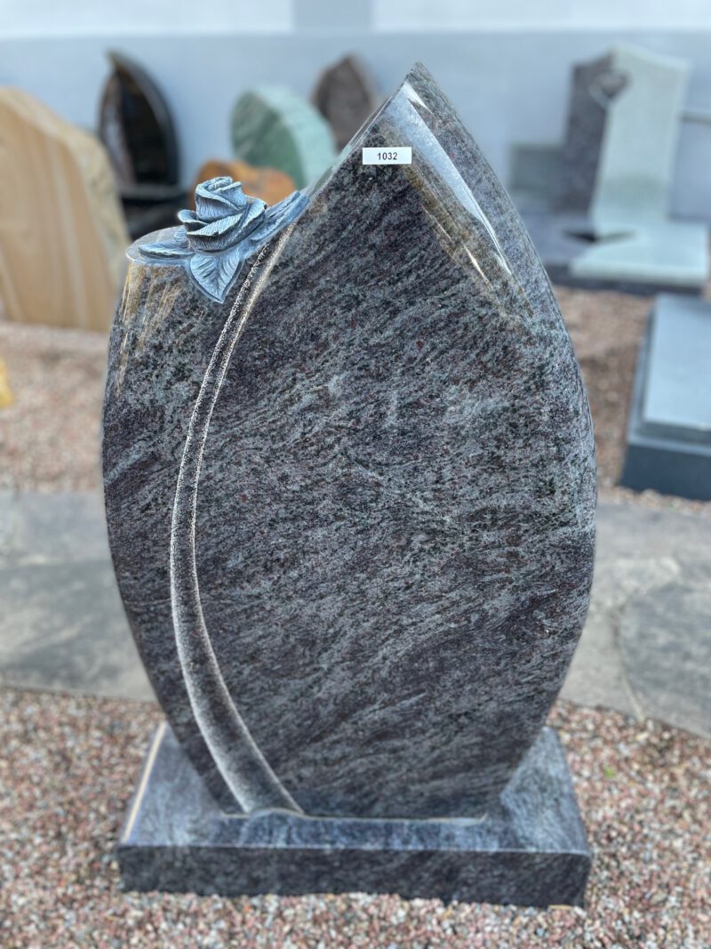 Grabdenkmal mit Sockel in Orion Dunkel mit Ornament plastisch gearbeitet